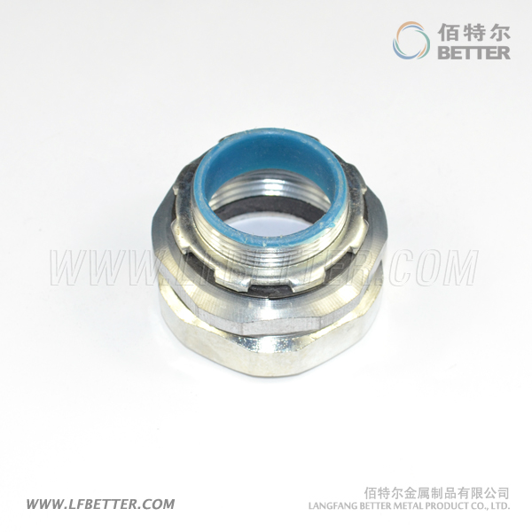 由多個配件組合而成的復(fù)合連接器,一端為外管螺紋,一端為可撓金屬電線保護(hù)套管螺紋。材質(zhì)為鋅鋁合金,表面鍍鋅或鍍鉻。